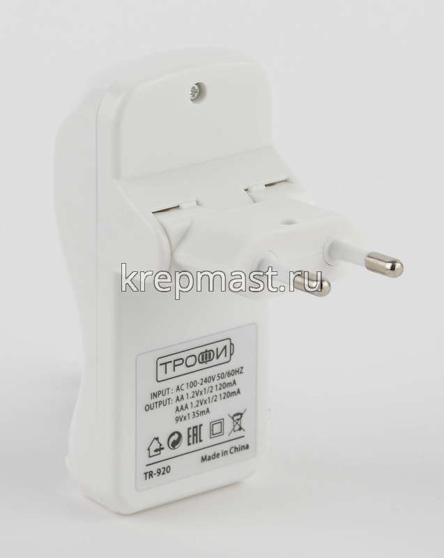 Зарядное устройство ТРОФИ компактное - это суточное зарядное устройство для 1 или 2 аккумуляторов АА или ААА. Безопасный ток 120мА, аккумуляторы могут оставаться в устройстве сколько угодно долго без ущерба для их работоспособности, два индивидуальных канала, время заряда для АА 2500мАч - 27 часов, для ААА 950мАч - 10 часов. Пожаробезопасный пластик. Защита от неправильной установки. LED-индикатор подключения.