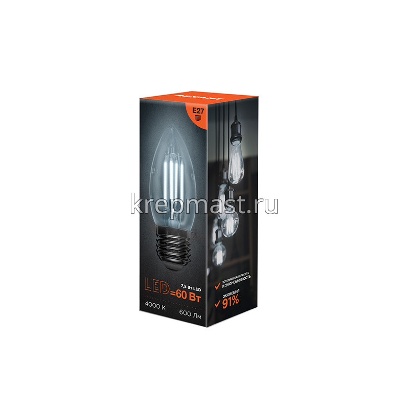Лампа свеча 7,5Вт Е27 4000K в интернет-магазине «Мастер Крепежа» по цене 122 руб. Более 12 наименований товаров в наличии в категории Лампы светодиод. СВЕЧА. Купить лампа свеча 7,5вт е27 4000k в Высокая Гора выгодно Вы можете on-line на нашем сайте, или отправив заявку по почте, а также по телефону или в пункте выдачи компании г. Казань, ул. Татарстан, 9, магазин "Мастер Крепежа". Доставка по Республике Татарстан и другие регионы РФ.