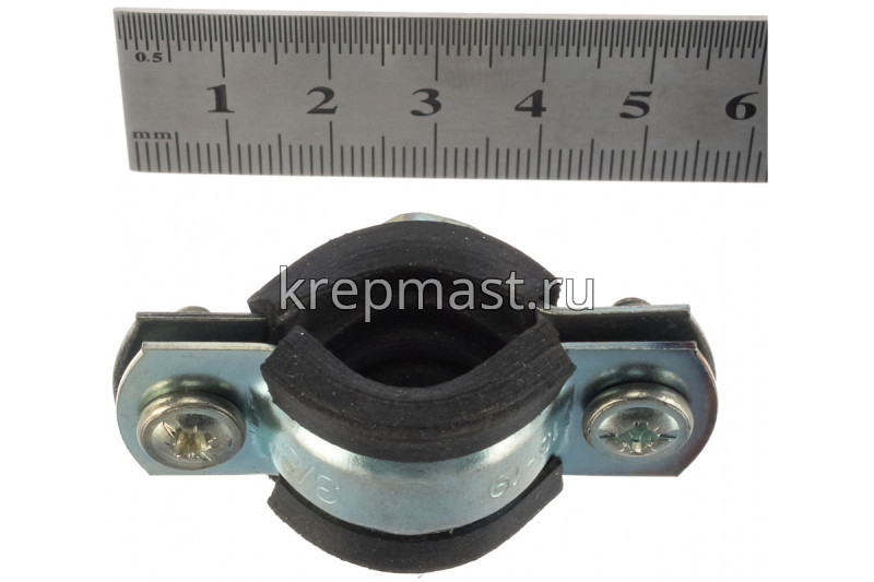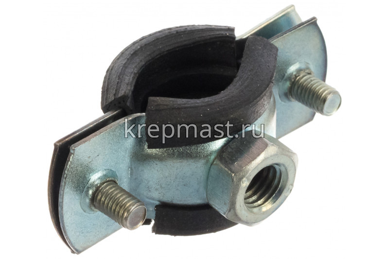 Хомут сантехнический с гайкой 15-20 мм представляет собой две металлические пластины, соединенные по краям регулировочными винтами м6 и резиновым уплотнителем. К хомуту приварена гайка м8 с метрической резьбой. Диаметр обжима трубы составляет от 16 до 20 мм. Изготавливается из оцинкованной стали толщиной 1 мм.