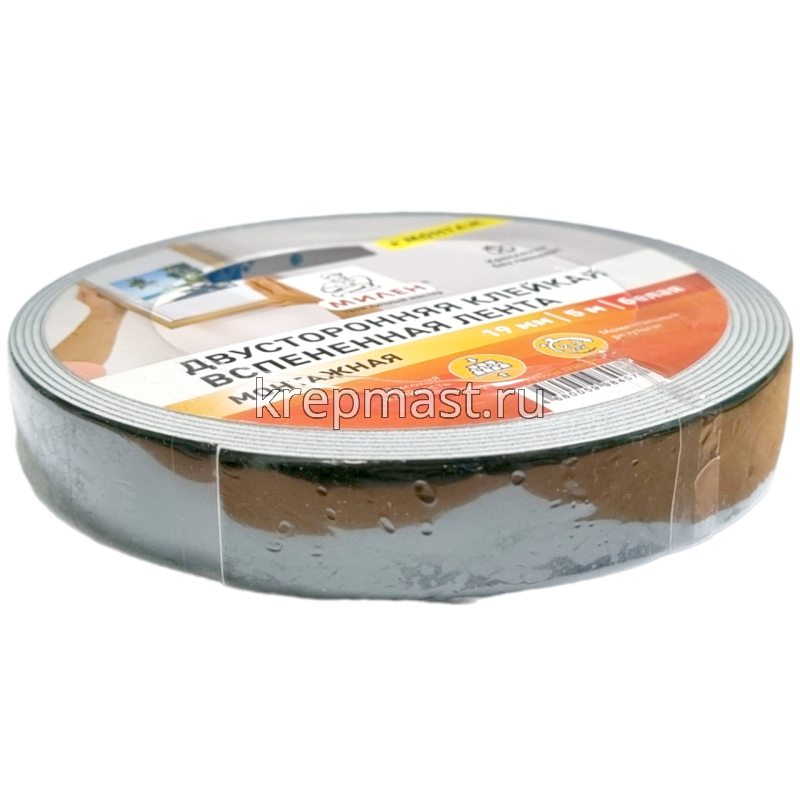 Скотч двусторонний на вспененной основе 19мм х 5м Mилен применяется, как альтернатива клею для крепления различных элементов. Двусторонний скотч ускоряет технологию монтажа, делая его более простым.