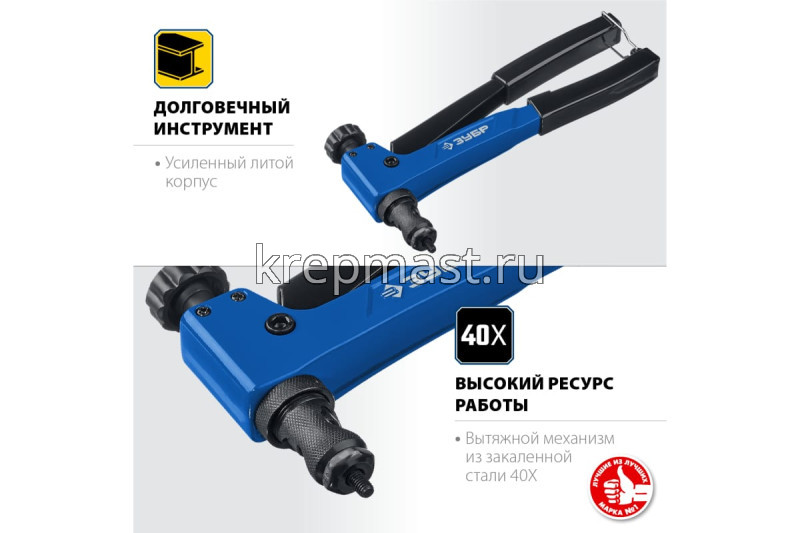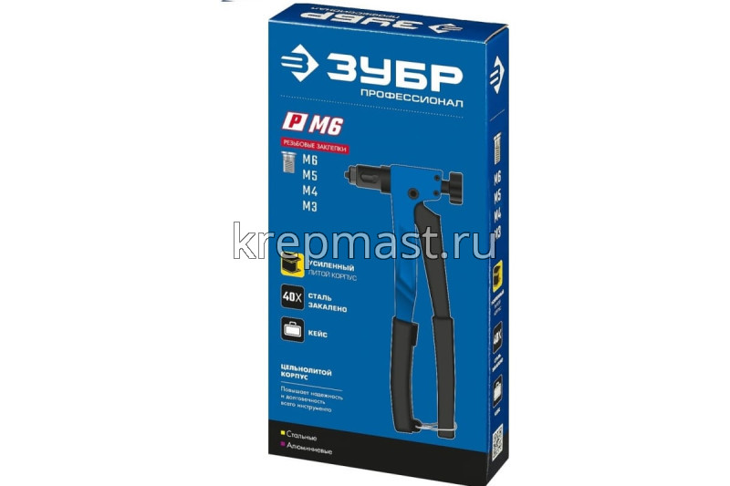 Заклепочник ЗУБР Р-М6 двуручный для резьбовых заклепок М3, М4, М5, М 6мм в интернет-магазине «Мастер Крепежа» по цене 3862 руб. Более 10 наименований товаров в наличии в категории ЗАКЛЕПОЧНИКИ. Купить заклепочник зубр р-м6 двуручный для резьбовых заклепок м3, м4, м5, м 6мм в Высокая Гора выгодно Вы можете on-line на нашем сайте, или отправив заявку по почте, а также по телефону или в пункте выдачи компании г. Казань, ул. Татарстан, 9, магазин "Мастер Крепежа". Доставка по Республике Татарстан и другие регионы РФ.
