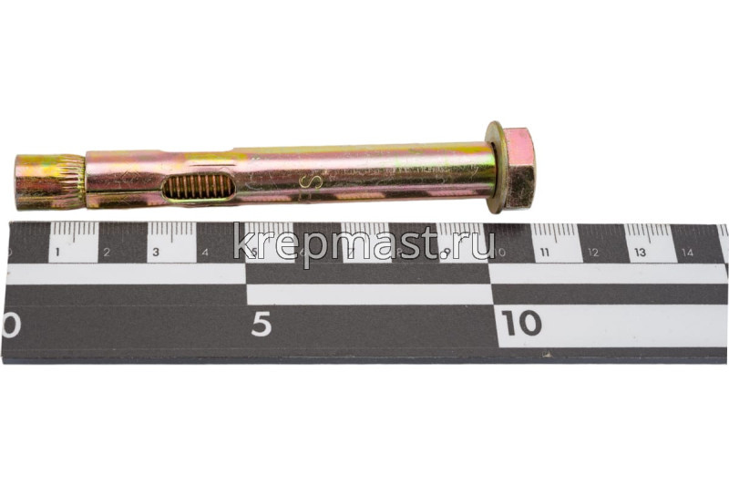 Анкерный болт с шестигранной головой 12 х 100 изготовлен из высокоуглеродистой стали со специальным цинковым покрытием и применяется для надежного крепления тяжеловесных конструкций к твердым основаниям из полнотелых материалов.