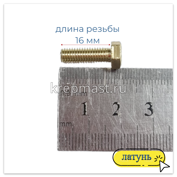 Болт М5 х 16 DIN 933 используется в случае, когда необходимо создать немагнитный узел. Латунный болт М5 применяется в приборостроении, авиации, атомной промышленности. Латунный крепеж стоек к органическим кислотам и углекислым растворам.