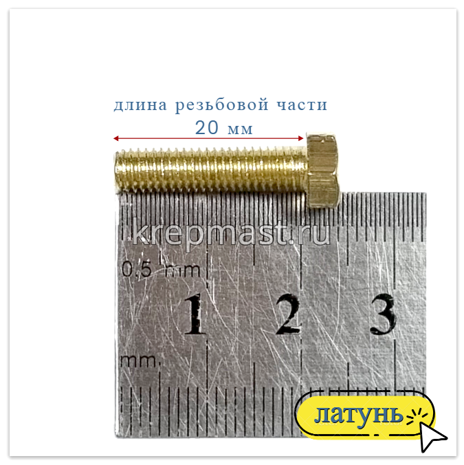 Болт М5 х 20 DIN 933используется в случае, когда необходимо создать немагнитный узел. Латунный болт М5 применяется в приборостроении, авиации, атомной промышленности. Латунный крепеж стоек к органическим кислотам и углекислым растворам.