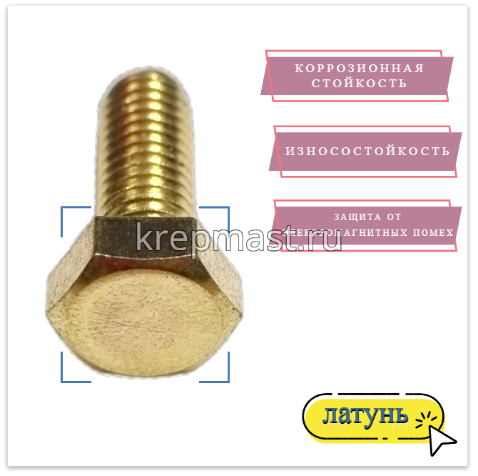 Болт 6х16 DIN 933 латунь в интернет-магазине «Мастер Крепежа» по цене 46 руб. Более 26 наименований товаров в наличии в категории Болты латунные DIN 933. Купить болт 6х16 din 933 латунь в Высокая Гора выгодно Вы можете on-line на нашем сайте, или отправив заявку по почте, а также по телефону или в пункте выдачи компании г. Казань, ул. Татарстан, 9, магазин "Мастер Крепежа". Доставка по Республике Татарстан и другие регионы РФ.