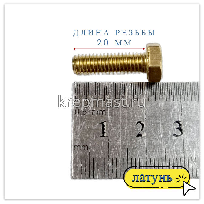 Болт 6х20 DIN 933 латунь в интернет-магазине «Мастер Крепежа» по цене 50 руб. Более 26 наименований товаров в наличии в категории Болты латунные DIN 933. Купить болт 6х20 din 933 латунь в Высокая Гора выгодно Вы можете on-line на нашем сайте, или отправив заявку по почте, а также по телефону или в пункте выдачи компании г. Казань, ул. Татарстан, 9, магазин "Мастер Крепежа". Доставка по Республике Татарстан и другие регионы РФ.