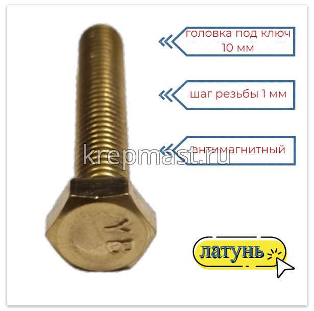 Латунный болт DIN 933 М6 х 35используется в случае, когда необходимо создать немагнитный узел. Латунный болт М6 применяется в приборостроении, авиации, атомной промышленности. Латунный крепеж стоек к органическим кислотам и углекислым растворам.