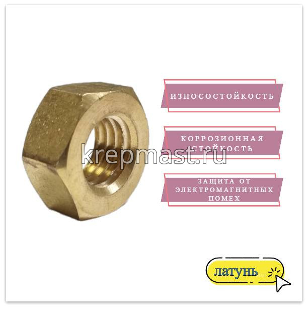 Гайка латунная не магнитится и служит для создания разъемных резьбовых соединений совместно с винтами, шпильками и болтами.