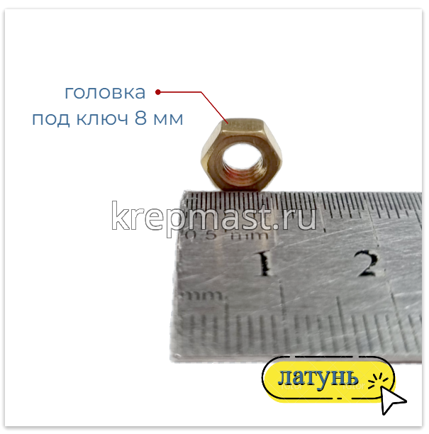 Гайка латунная не магнитится и служит для создания разъемных резьбовых соединений совместно с винтами, шпильками и болтами.