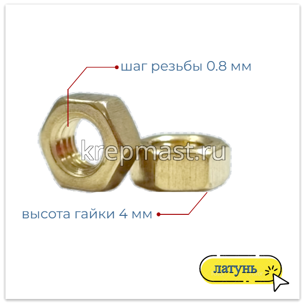 Гайка 6-гр. М 5 (0,8) латунь DIN 934 в Высокая Гора