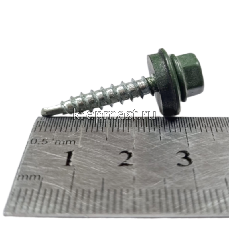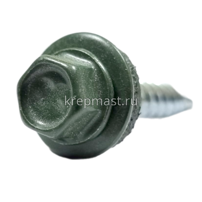 Кровельный саморез окрашенный с шайбой и резиновой прокладкой EPDM DIN 7504 4,8 х 29 по дереву RR 11 (цвет зелено-серый) - представляет из себя саморез с шестигранной головкой, фланцем и резиновой прокладкой для эффективного прижатия листового металла к основанию.