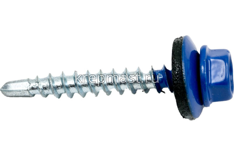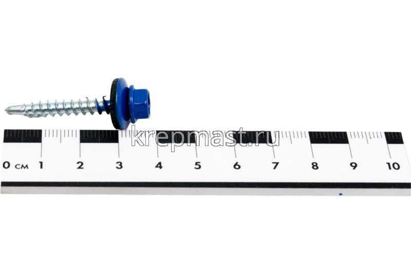 Кровельный саморез окрашенный с шайбой и резиновой прокладкой EPDM DIN 7504 4,8 х 35 по дереву RAL 5002 (цвет светло - синий) - представляет из себя саморез с шестигранной головкой, фланцем и резиновой прокладкой для эффективного прижатия листового металла к основанию.