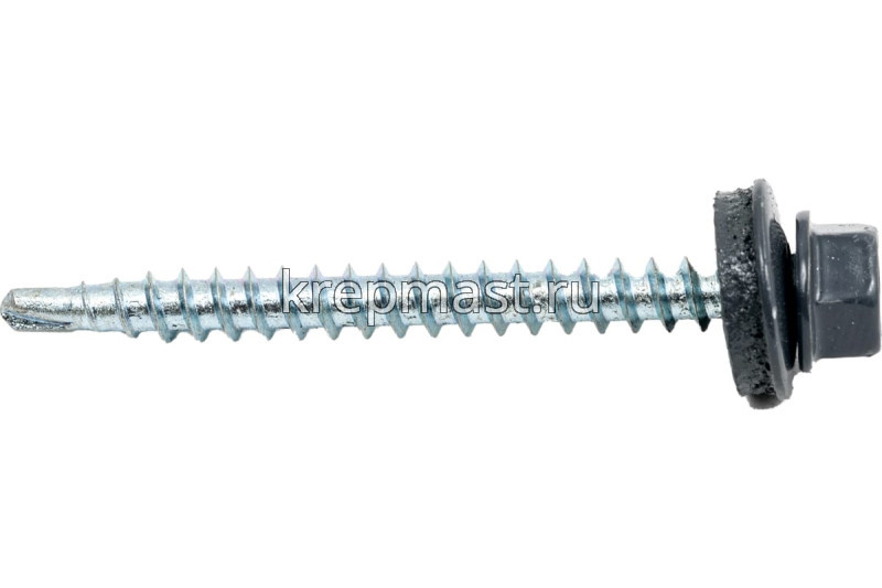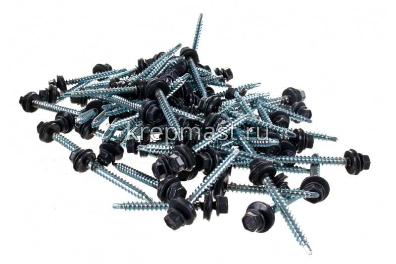 Кровельный саморез окрашенный с шайбой и резиновой прокладкой EPDM DIN 7504 4,8 х 51 по дереву RAL 7024 (цвет графитово - серый) - представляет из себя саморез с шестигранной головкой, фланцем и резиновой прокладкой для эффективного прижатия листового металла к основанию.
