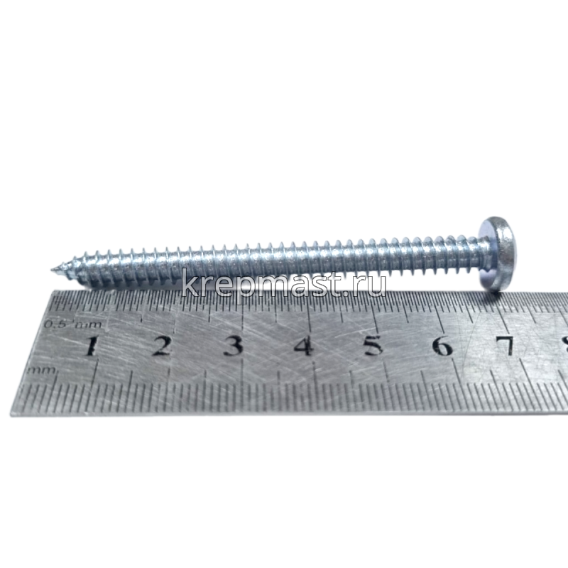Саморез по металлу с полусферической головкой и острым концом DIN 7981 6.3 x 70 применяется для крепления стальных и других листовых материалов (дерево, фанера) к металлическим и деревянным несущим конструкциям.