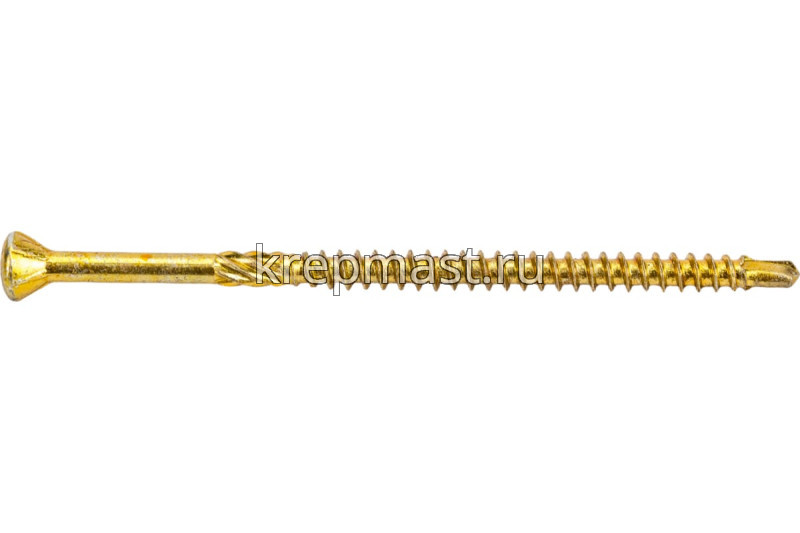 Шурупы для массивной доски оснащаются укороченной головкой, резьбой с мелким шагом и специальным наконечником, что позволяет минимизировать образование трещин в изделиях из древесины любой толщины.