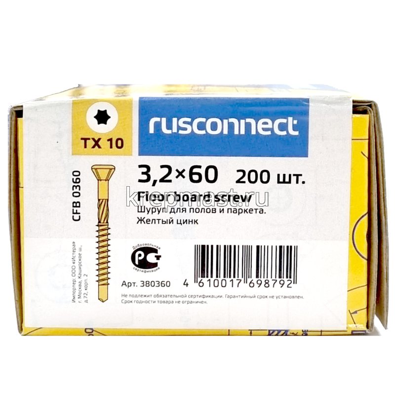Шуруп для полов и паркета 3,2х60 в интернет-магазине «Мастер Крепежа» по цене 10 руб. Более 5 наименований товаров в наличии в категории Шурупы для полов и паркета. Купить шуруп для полов и паркета 3,2х60 в Высокая Гора выгодно Вы можете on-line на нашем сайте, или отправив заявку по почте, а также по телефону или в пункте выдачи компании г. Казань, ул. Татарстан, 9, магазин "Мастер Крепежа". Доставка по Республике Татарстан и другие регионы РФ.