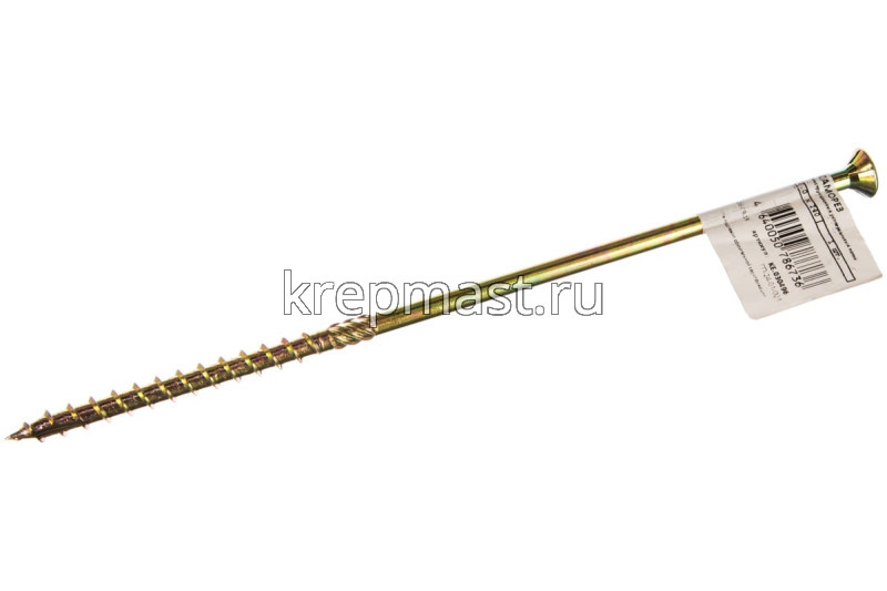 Конструкционный саморез по дереву с потайной головкой 8,0 х 240 совершает в одно движение такие операции, как накернивание, засверливание, зенковка и вворачивание.