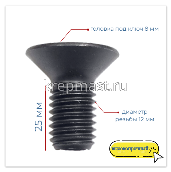 Винт с внут. шестиг. потай голов. 12х 25 кл.пр.10,9 DIN 7991 ЧЕРНЫЙ в Высокая Гора