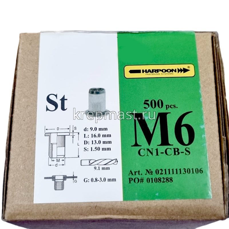 Гайка-заклепка HARPOON М 6 х 16,5мм CN1-CB-S цилиндрический борт, первая длина в Высокая Гора