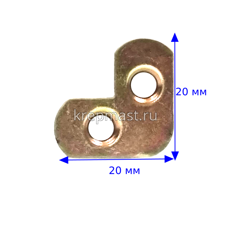 Уголок-пластина 20 х 20 желтый с закругленными углами — крепежный элемент с равными по размеру сторонами. С его помощью можно, в значительной степени, усилить ту или иную деревянную конструкцию, придав ей дополнительные жесткость и надежность. Материал: сталь.