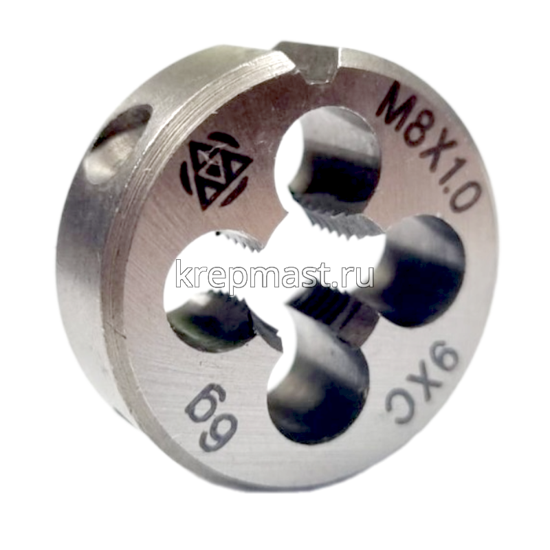 Плашка М8 х 1.0мм с мелким шагом резьбы круглой формы используется для нанесения резьбы на заготовку. Обладает высокими механическими свойствами, так как изготовлена из инструментальной стали.