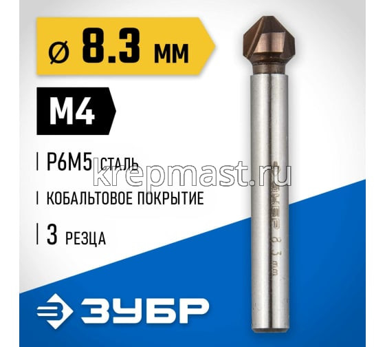 Зенкер ЗУБР конус, цилиндр.хвост. 4мм(д.8,3х50мм) в Высокая Гора