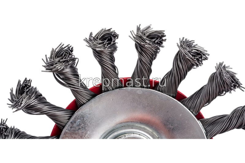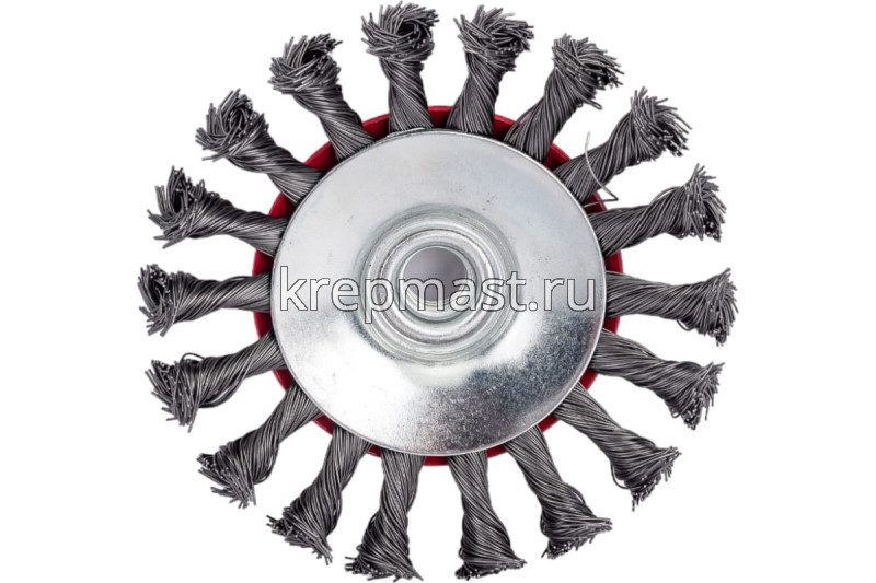 Корщетка- колесо 115мм для УШМ FIT сталь витая с наклоном гайка М14 используется в угловых шлифовальных машинах. Рабочая поверхность оснастки — пучки стальной проволоки, которые расположены под углом от основания. Применяют для шлифования поверхностей.