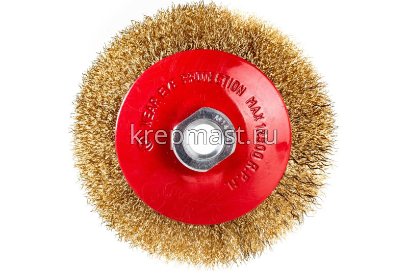 Корщетка-колесо с наклоном 115 мм латунь является сменным элементом для угловых шлифовальных машин. Применяется для зачистки от лака, краски и ржавчины различных поверхностей и изделий. Рабочая часть состоит из стальной волнистой проволоки с латунным покрытием.