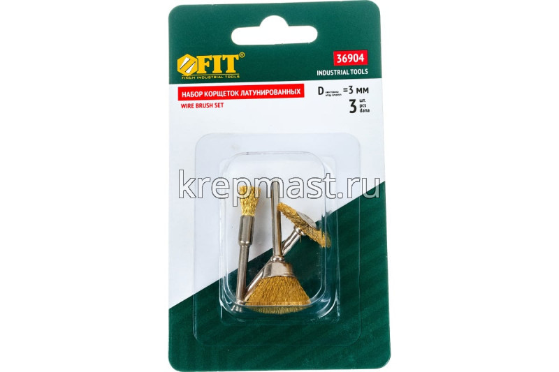 Стальные корщетки FIT IT набор 3шт. предназначены для гравировальной машинки. В наборе 3 шт. Предназначена для удаления ржавчины и шлифования. D хвостовика=3,1 мм.