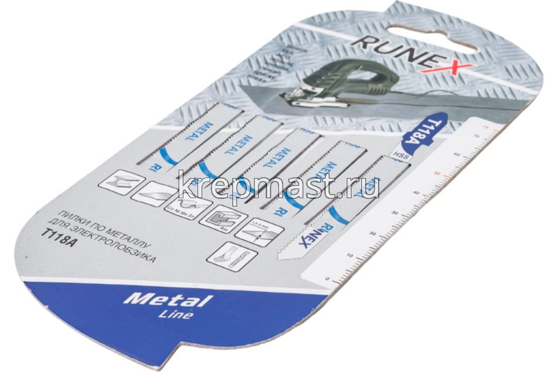 Пилки для электролобзика RUNEX Т 118 А 75мм, 5 шт. используются для резки изделий из металла толщиной до 3 мм с помощью электролобзика. Полотна изготовлены из быстрорежущей стали.