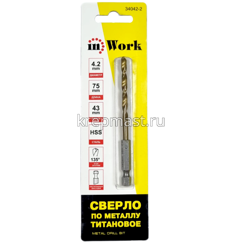 Сверло по металлу 4,2 мм U-образ.хвост.под биту в Высокая Гора