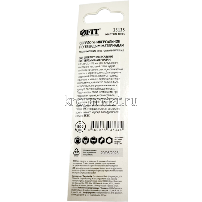 Сверло универсальное 5х85мм (сталь, чугун, цв.мет, стекло, керамогранит) в Высокая Гора