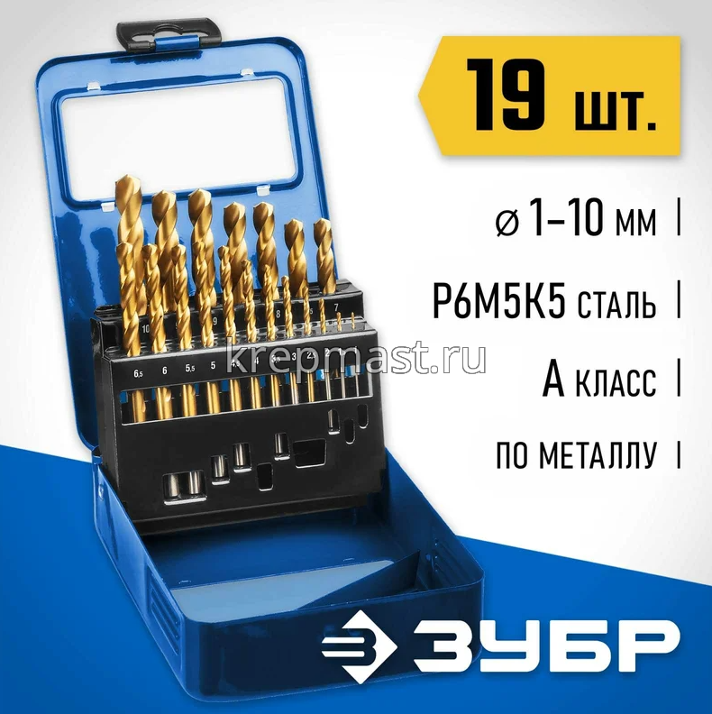 Набор сверел по металлу 19шт ЗУБР (1-10мм) КОБАЛЬТ металл.бокс в интернет-магазине «Мастер Крепежа» по цене 6161 руб. Более 27 наименований товаров в наличии в категории СВЕРЛА НАБОРЫ. Купить набор сверел по металлу 19шт зубр (1-10мм) кобальт металл.бокс в Высокая Гора выгодно Вы можете on-line на нашем сайте, или отправив заявку по почте, а также по телефону или в пункте выдачи компании г. Казань, ул. Татарстан, 9, магазин "Мастер Крепежа". Доставка по Республике Татарстан и другие регионы РФ.