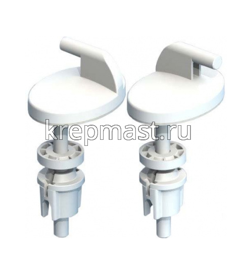Крепёж сиденья унитаза (2 шт) предназначено для надежной фиксации сидушки к унитазу. Комплект состоит из 2 креплений. При установке кронштейны вставляют гладкой частью в отверстия сиденья в сборе с подкладками, а резьбовой частью в отверстия унитаза. На резьбовую часть надевают шайбы (конусом вниз) и гайки быстросъемные, сжимая их к оси резьбы. Затем устанавливают сиденье в требуемое положение и затягивают гайки