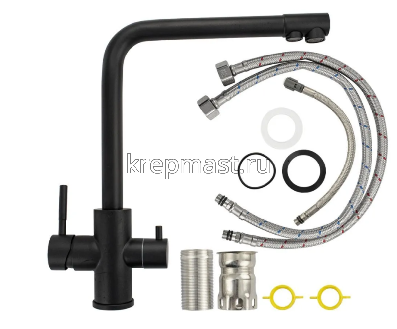 Смеситель д/кухни MAGNUS 91120 черный с Гобраз.гусаком для питьевой воды в Высокая Гора