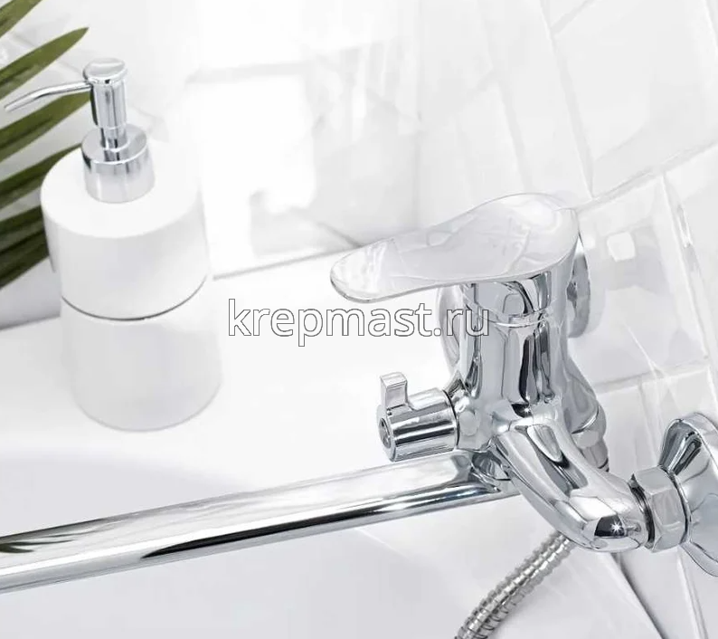 Стильный и функциональный однорычажный смеситель для ванны и душа с длинным поворотным изливом удобен и надежен в использовании.