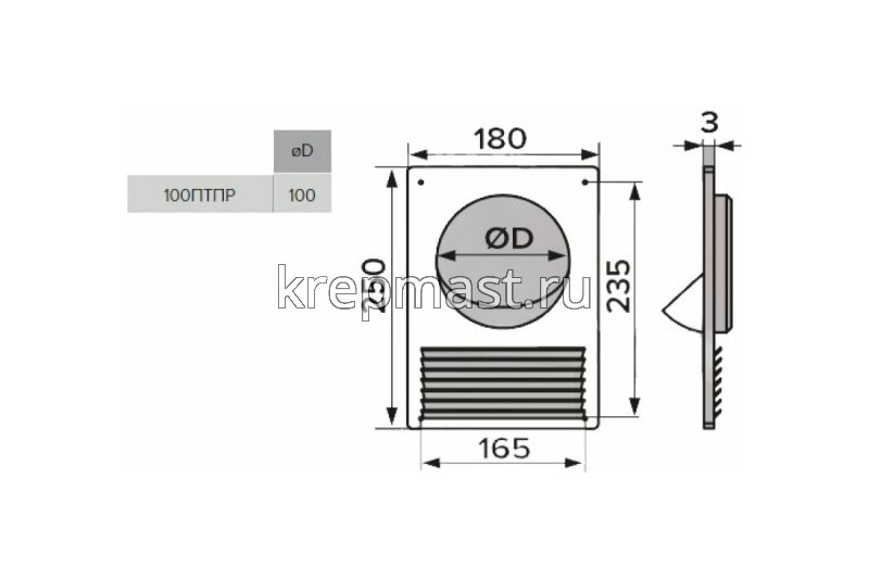 Площадка торцевая пластиковая с решеткой предназначена для соединения приточных или вытяжных вентиляционных каналов круглого сечения диаметром 100 мм с вентиляционным отверстием. Крепится к стене или потолку с помощью шурупов. Конструкция предусматривает дивиатор для предотвращения обратной тяги.