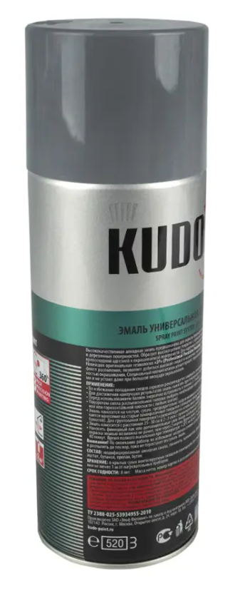 Краска KUDO темно - серая RAL 1016 - высокопрочная универсальная глянцевая аэрозольная эмаль в баллончике, предназначенная для окраски предварительно загрунтованных металлических и деревянных поверхностей. Аэрозольная краска легко наносится на труднодоступные места. Образует долговечное покрытие с хорошей укрывистостью, атмосферостойкостью, превосходной адгезией к окрашиваемой поверхности. Применяется для наружных и внутренних работ.